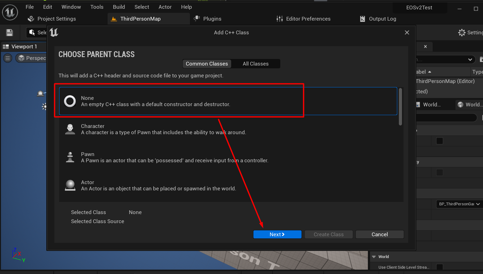 Go to Tools -> New C++ Class -> None Class -> Create Class